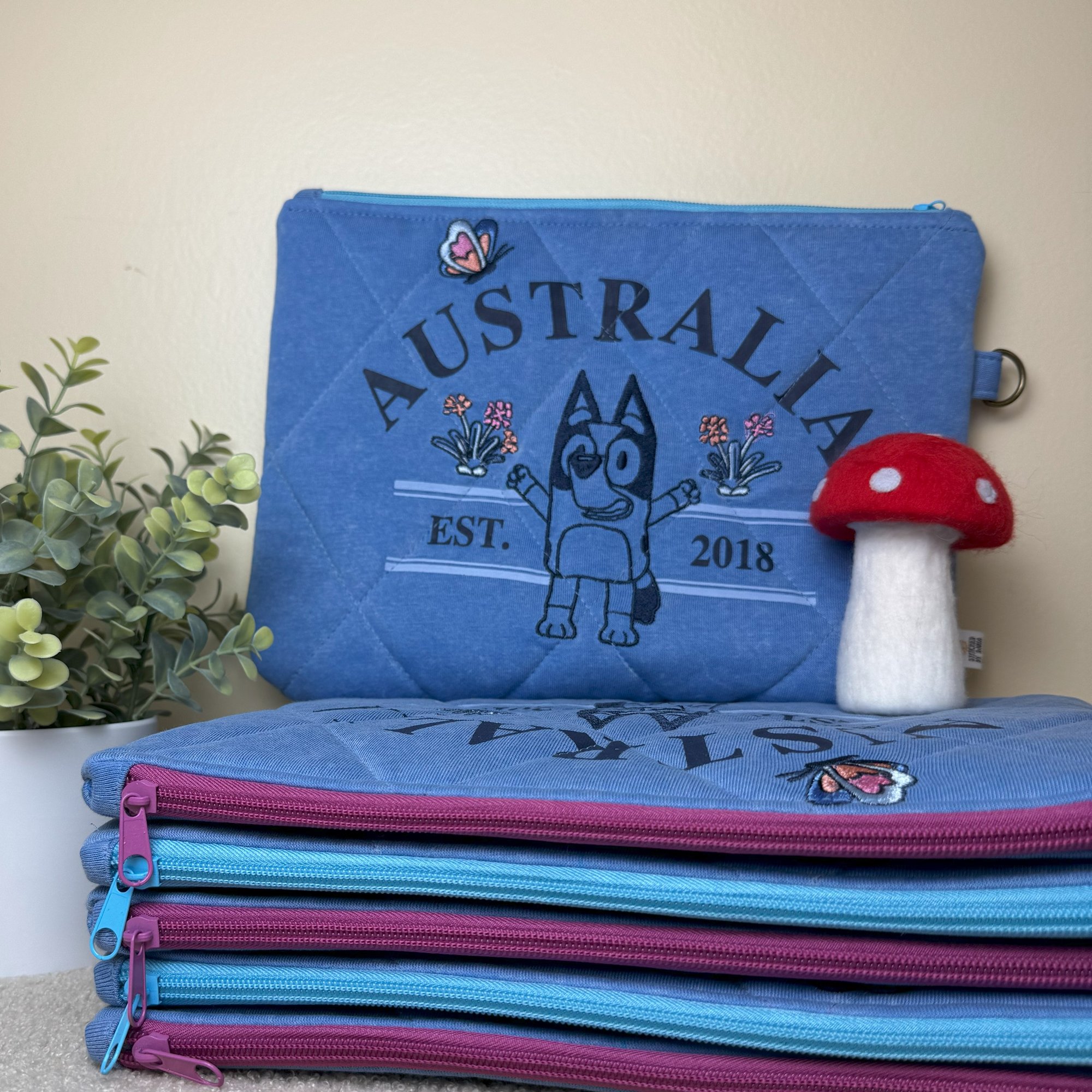 Each pouch is carefully made from quality cotton fabrics or upcycled new clothing (like Bluey tops), giving every piece its own character and purpose.